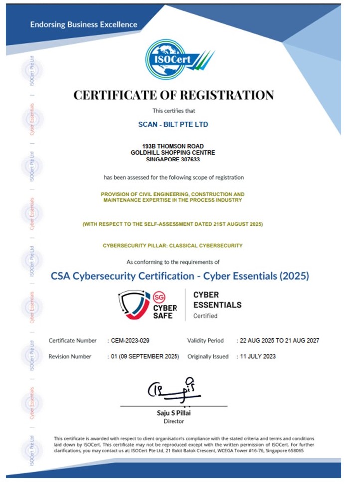 - BCA – Grade B1 Registered Civil Engineering Contractor